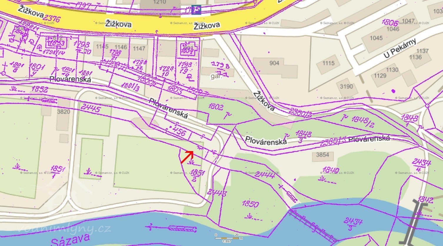 Na I. vojenském m4) mlynář Václavapování v letech 1764-68 je mlýn na Dolním předměstí na Sázavě jihovýchodně od města zakreslen. Jak ukazuje indikační skica a císařský otisk z r. 1838, mlýn na náhonu ze Sázavy měl č.p. 82. Šlo o mlýn se dvěma budovami - zděnou a dřevěnou a mlýn měl dvě kola. Indikační skica dále uvádí, že majitelem mlýna byl v té době Josef Husák.