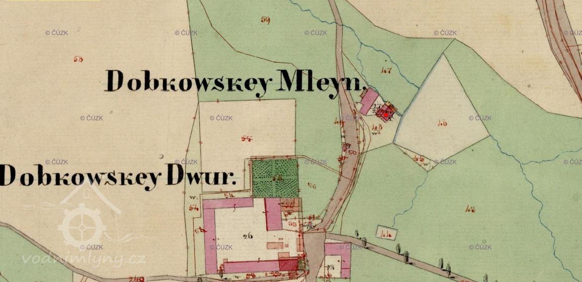 V polovině 18. století nechala nová majitelka Ludmila ze Steina postavit v Dobkově nový zámek s hospodářským dvorem a mlýnem.