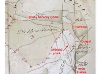 Již v urbáři černokosteleckého panství z roku 1677, tzv. Zlaté knize, je zmiňována jalová trouba, později přesněji nazývaná Mlýnský potok, kterou se na mlýn a pilu „od starodávna“ přiváděla voda z Dlouhého hačeckého rybníka. Tato strouha měřila téměř 1,5 kilometru a vodou zásobovala malou retenční nádrž nad mlýnem.