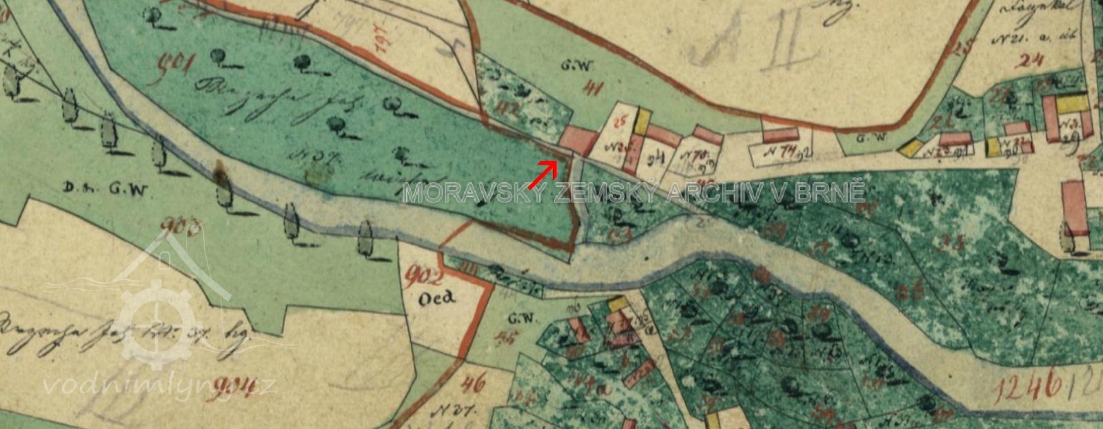Stavba na fotografiích není nejspíš mlýn. Postavena byla někdy za 1. republiky. Zajímavé je, že má dvoje vchodové dveře. O této lokalitě by to chtělo zjistit více informací. (RŠ)