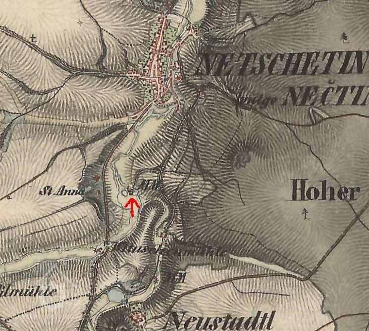 V Nečtinách na druhé straně údolí proti kapli sv. Anny byl mlýn, stál na levém břehu strouhy vedoucí ke Starému potoku. Na císařském otisku měl čp. 20. Objekt stále stojí, dnes pod čp. 179 a je využíván jako obytné stavení.