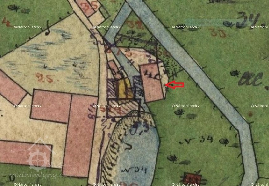 Původní zadní část mlýnské budovy sloužící jako mlýnice se nedochovala. Přední část byla upravena na rodinný domek určený k bydlení, který má shodné čp. 34.