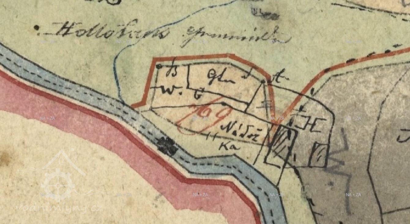 Uhrovský mlynář Jan Rabas měl syna Františka, který pracoval u své sestry na Trávnickém mlýně. František upozornil rakovnického baumajstra Antonína Rotta, který měl dceru Terezii na možnost postavit na Všehrdském potoce mlýn, Všehrdští však nechtěli místo k postavení mlýna na katastru obce prodat. Jednáno bylo také o prodeji místa se zástupci obce Holovous. Jednání dosopělo tak daleko, že na staveniště nacházející se na katastrálním území Holovous byl již svážen stavební materiál, dříví a kámen. V té době nevěstin otec zemřel a bylo po stavbě mlýna proto, že ženichův otec se sám ke stavbě mlýna odhodlat nemohl. Svezený materiál byl prodán a na tomto místě postavil mlýn František Pešek z Holovous.