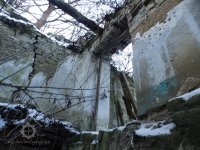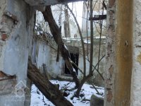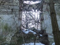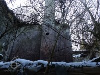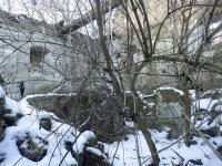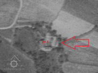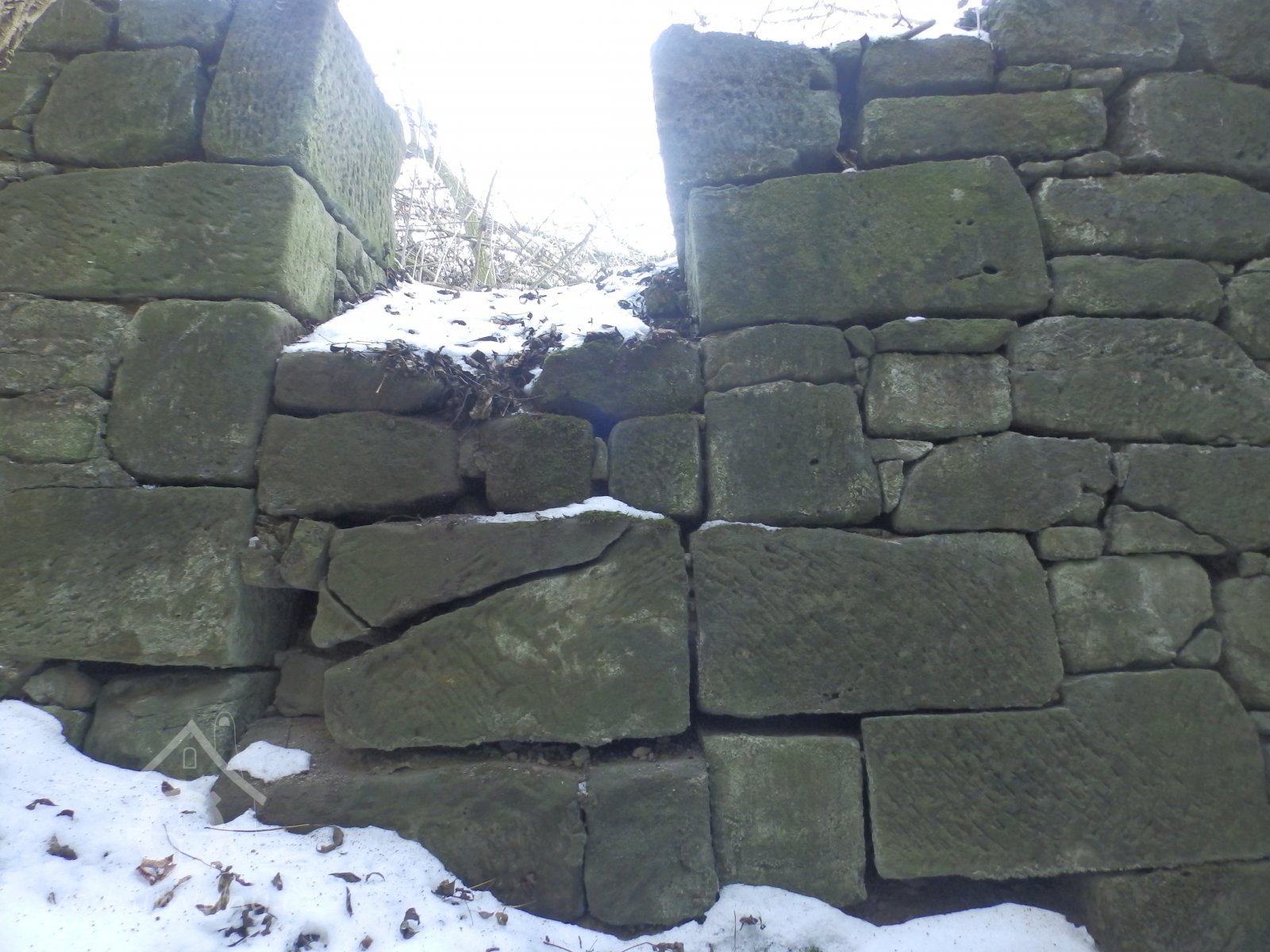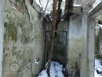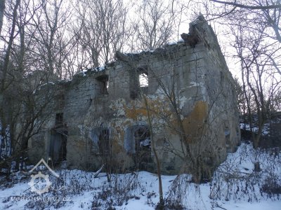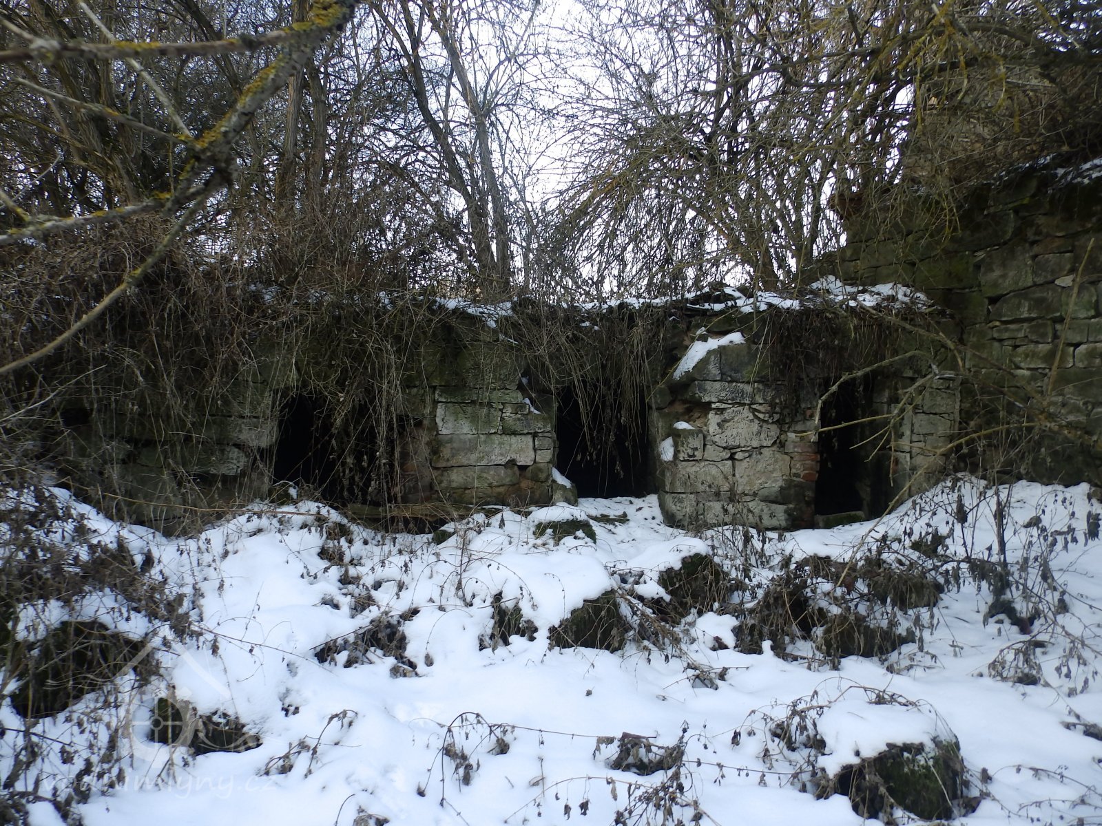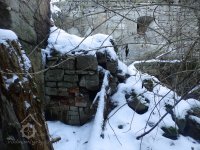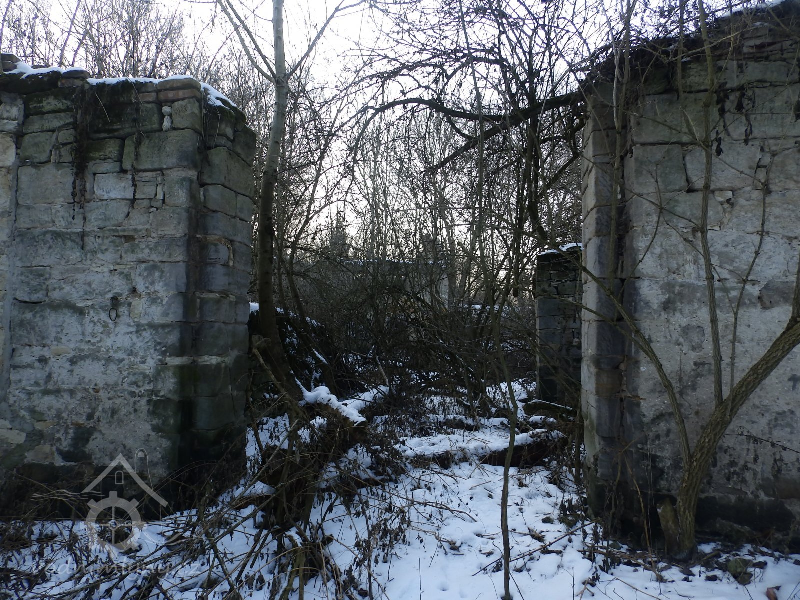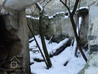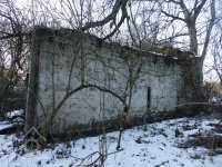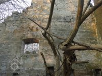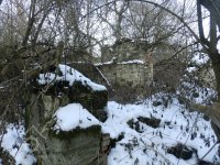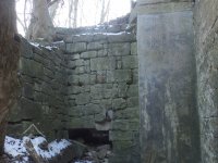 Mlýnice a obytná budova uspořádány do L, na jejich styku v rohu umístěna lednice.