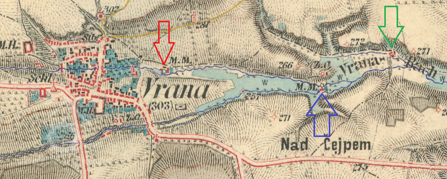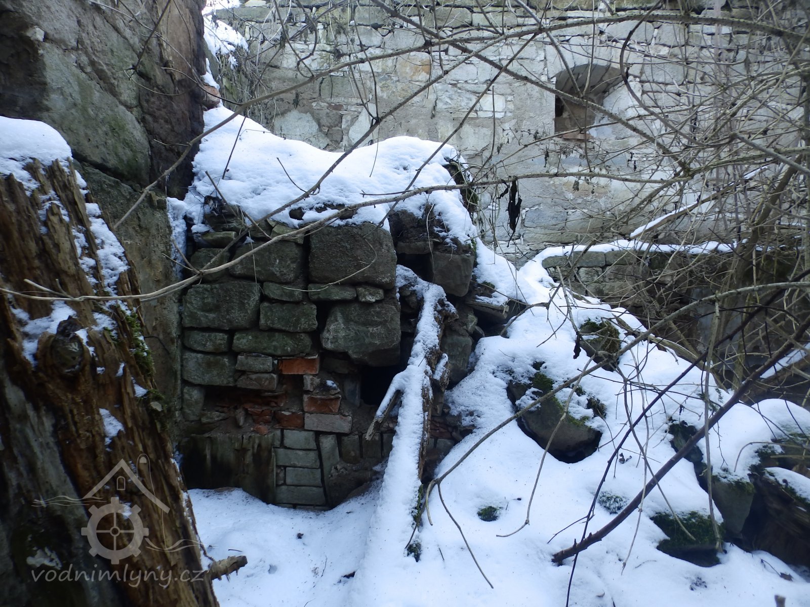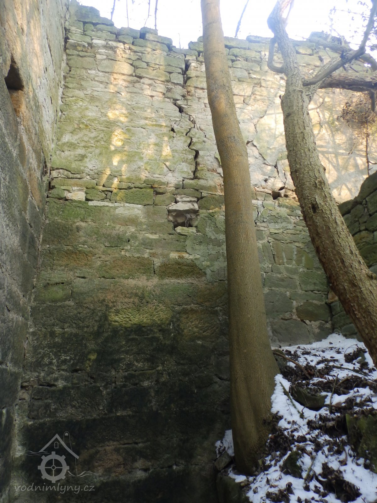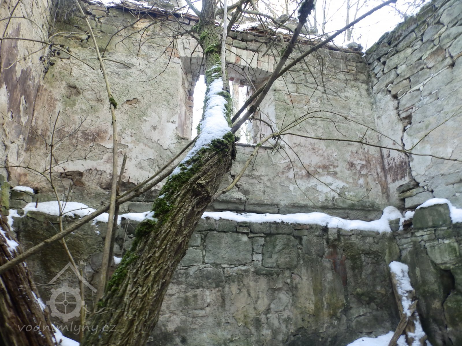 Nejzachovalejší z trojice vranských vodních mlýnů, jako poslední rovněž zůstával v provozu, jeho mohutné zříceniny nalezneme v husté vegetaci u záhybu cesty pod vypuštěným rybníčkem. (Pozor! Zříceniny nejsou úplně bezpečné a hrozí zde pád z velké výšky!)