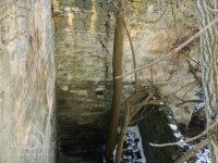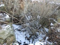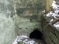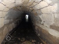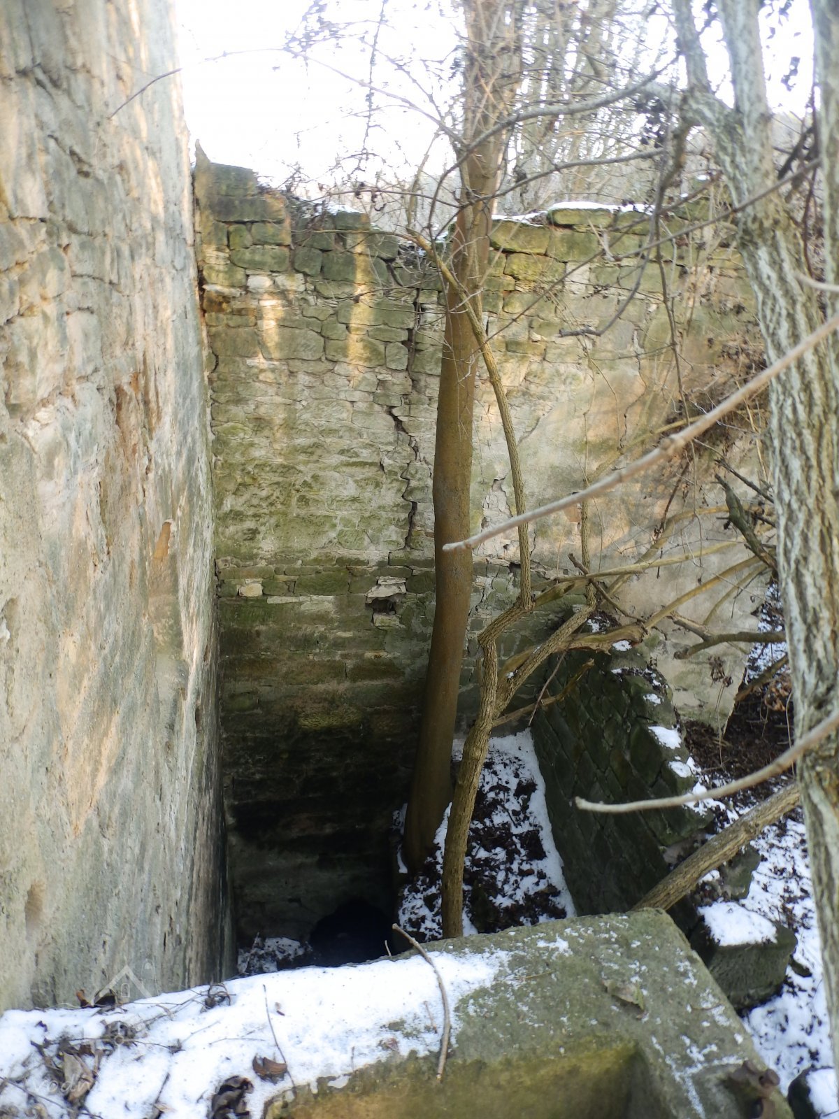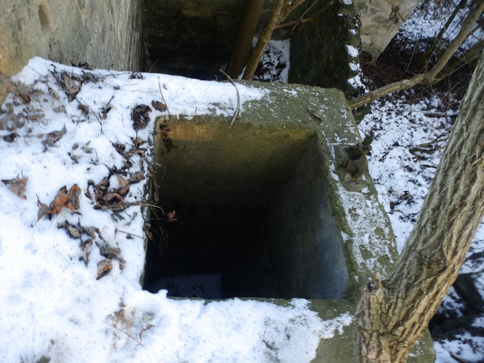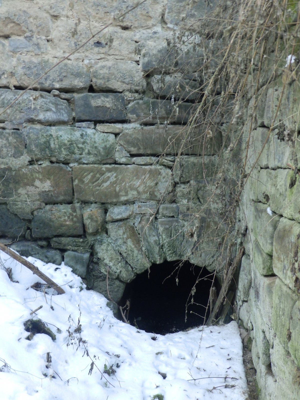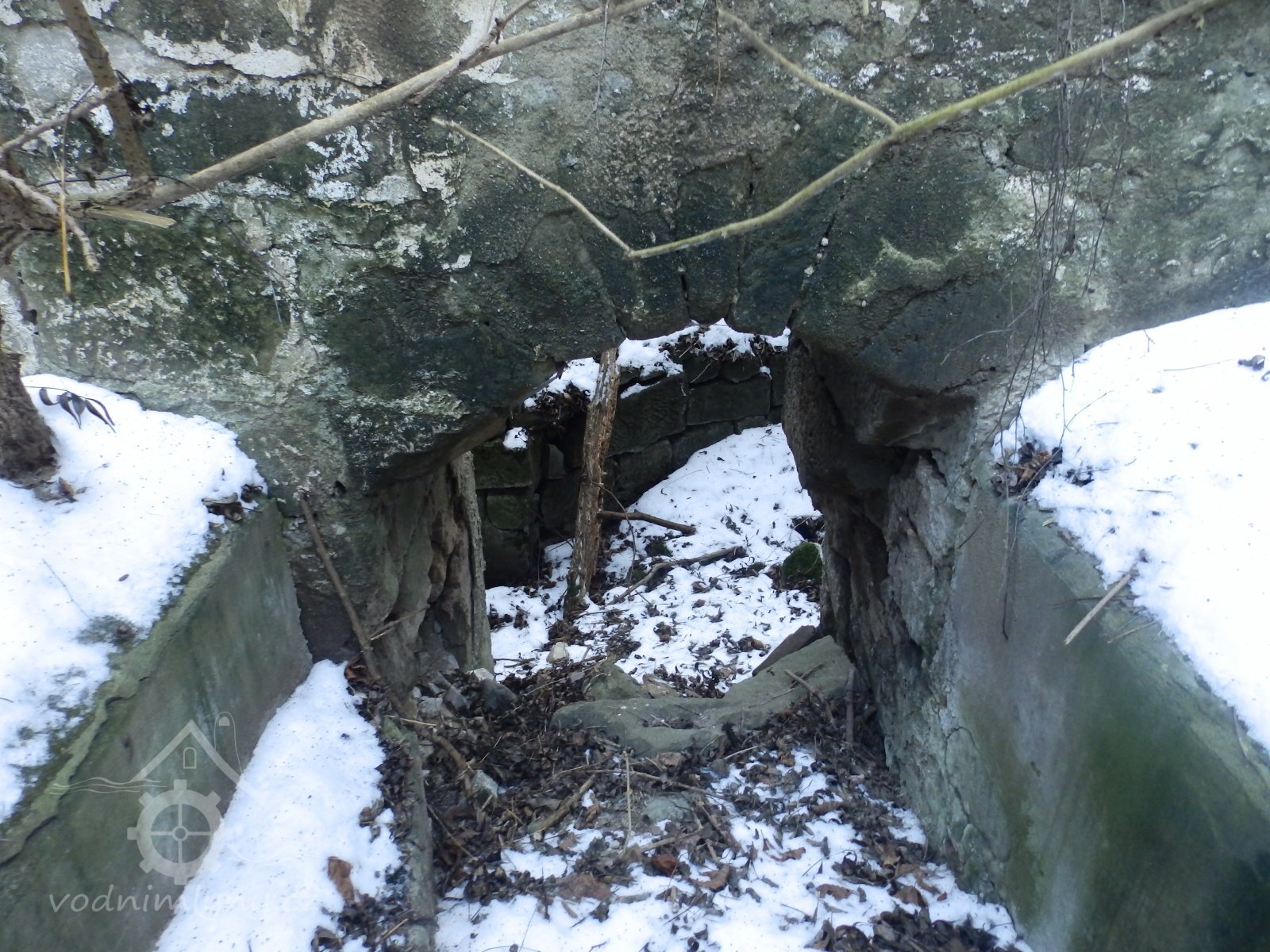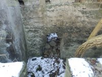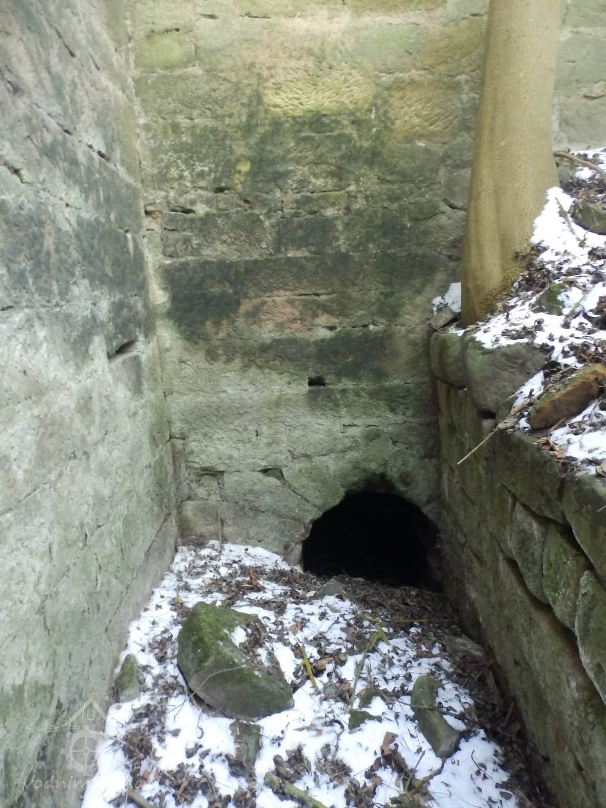 Odpadový kanál z lednice veden po celé délce pod obytným traktem.
