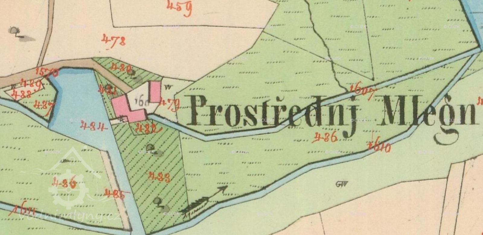 Popis1930: 1 kolo na svrchní vodu, průtok 0,134 m3/s, spád 4,9 m, výkon 5 HP