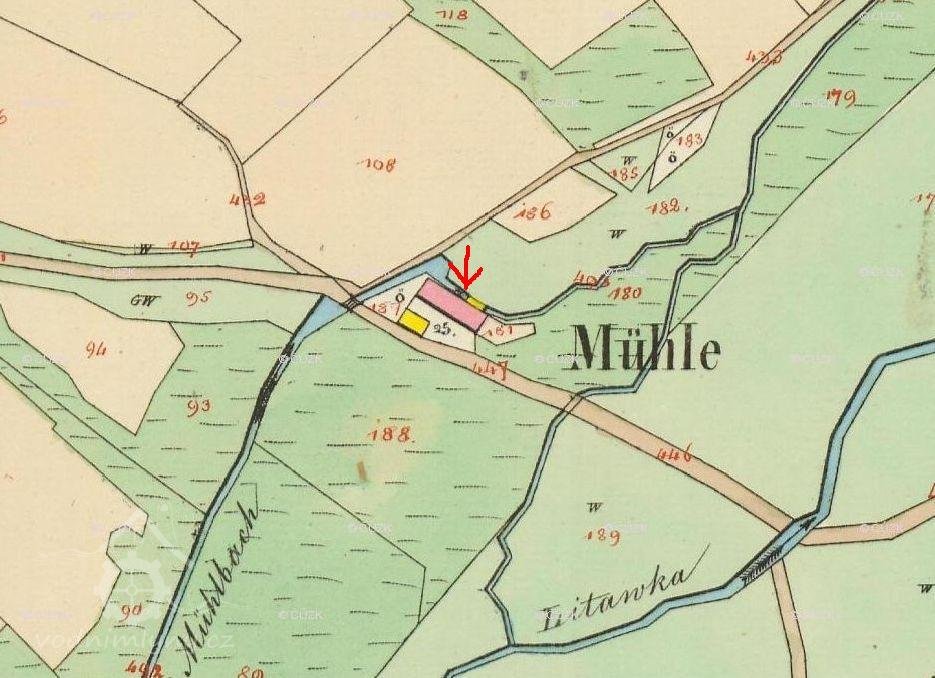 Popis1930: 1 kolo na vrchní vodu, hltnost 0,095 m3/s, spád 4,2 m, výkon 3,46 HP