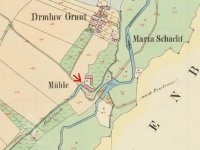 Začátkem 19. století - od roku 1804 - zde mlynařil Josef Drechsler, od roku 1817 Apolena Bartůňková a o rok později V. Drmla. Po něm zůstal název Drmlovo pole. To proto, že tento mlynář rozparceloval svá pole horníkům. Když roku 1837 V. Drmla zemřel, zdědil mlýn jeho syn Josef. Roku 1877 je na mlýně doložen Václav Drmla, zřejmě Josefův syn.