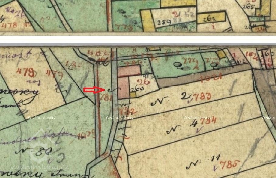Dle stabilního katastru byl mlýn a okolní pozemky k němu patřící v roce 1842 v majetku obce Zámostí, mlynář byl nájemcem.