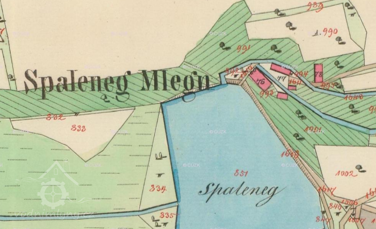 Mlýn pod Spáleným rybníkem pod Srbčí, v 2. pol. 19. stol. přestavěný na parní.