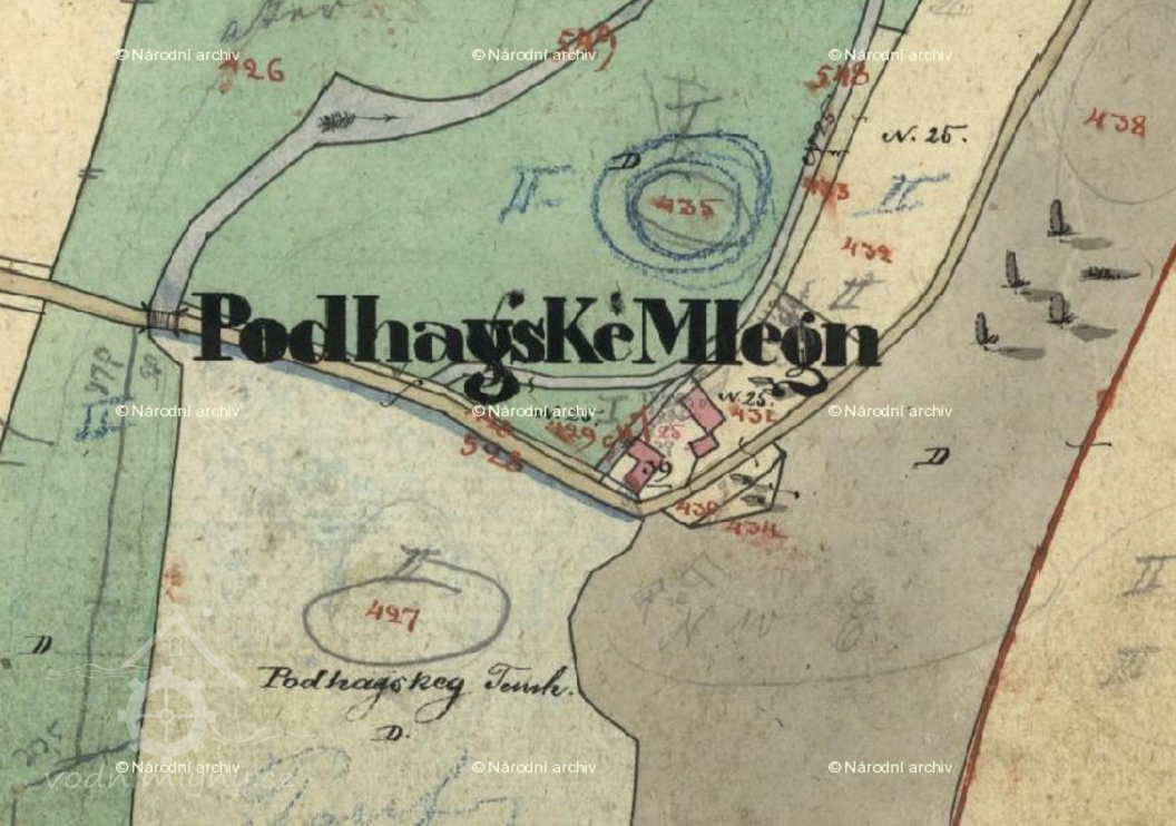 V 2. pol. 19. stol. mlýn přeměněn na hájovnu pro hajného v Podhájí, patřící k panskému dvoru ve Veleni.