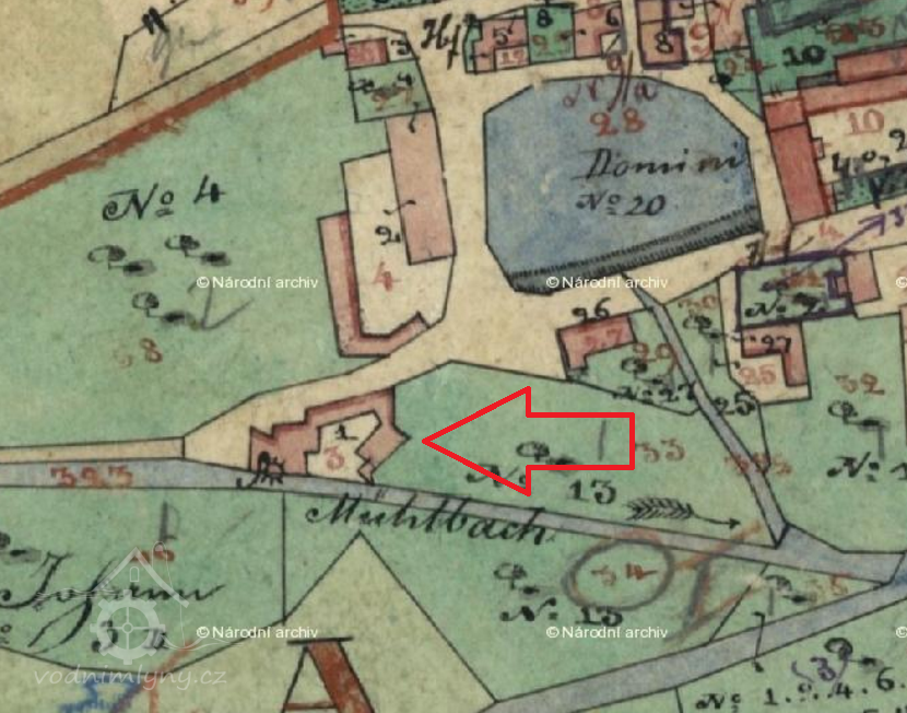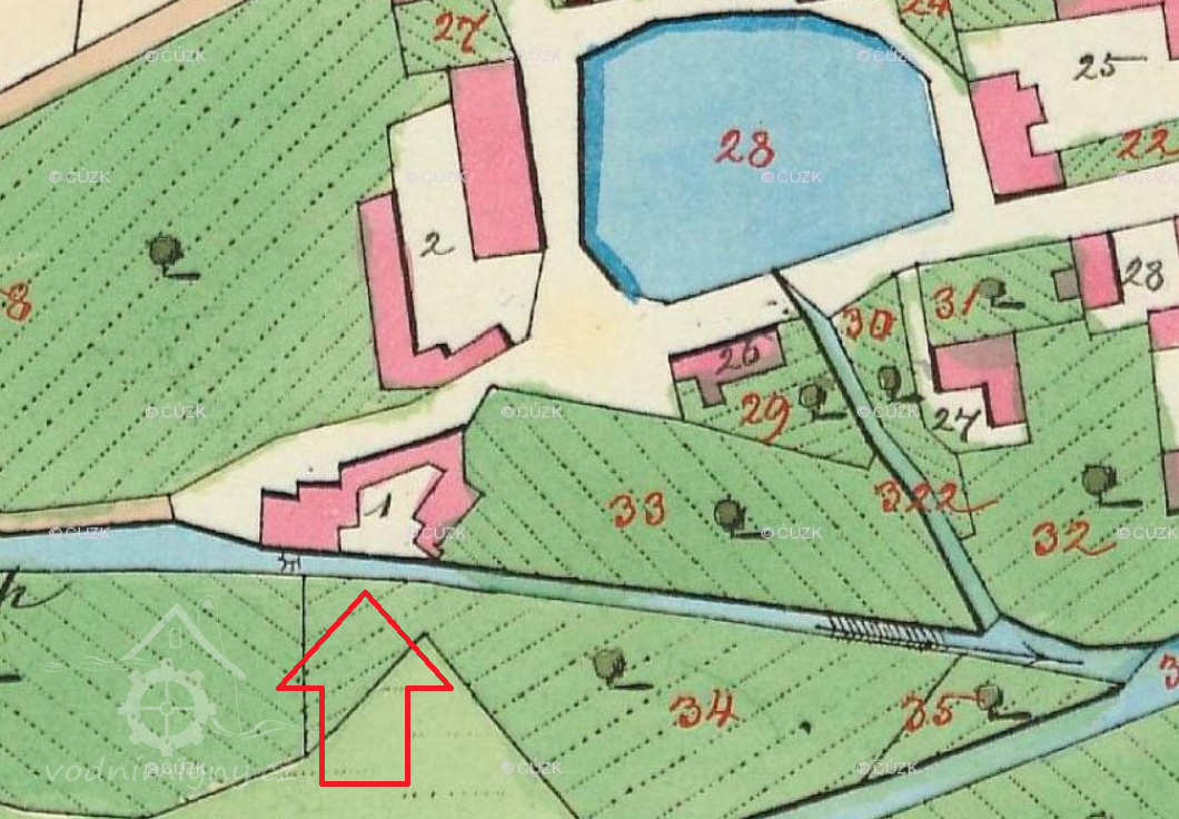 Popis1930: 1 kolo na svrchní vodu, hltnost 0,109 m3/s, spád 4,6 m, výkon 4,34 HP