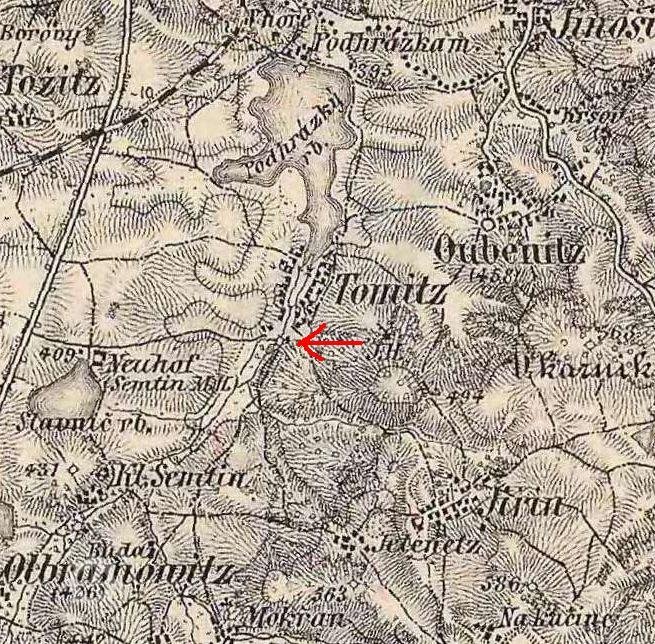Mlýn na Konopišťském potoce v jižní části Tomic je zobrazen již na I. vojenském mapování v letech 1764-68.