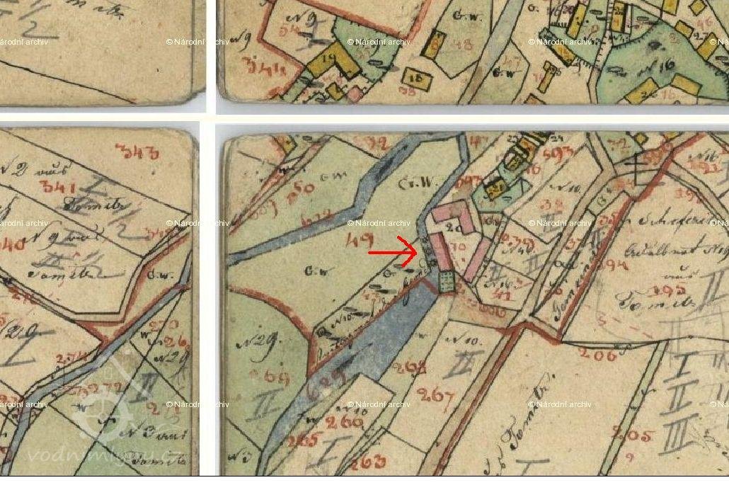 Na císařském otisku a indikační skice v r. 1840 je vidět, že mlýn byl zděná budova o 3 vodních kolech a byly při něm další hospodářské budovy. V roce 1840 byl majitelem mlýna Antonín Zimmermann.