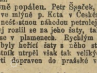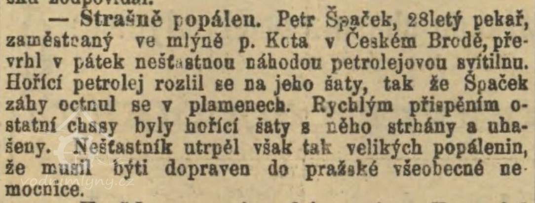 V září 1883 byl popálen od převrácené petrolejové lampy pekař Petr Špaček. (RR)