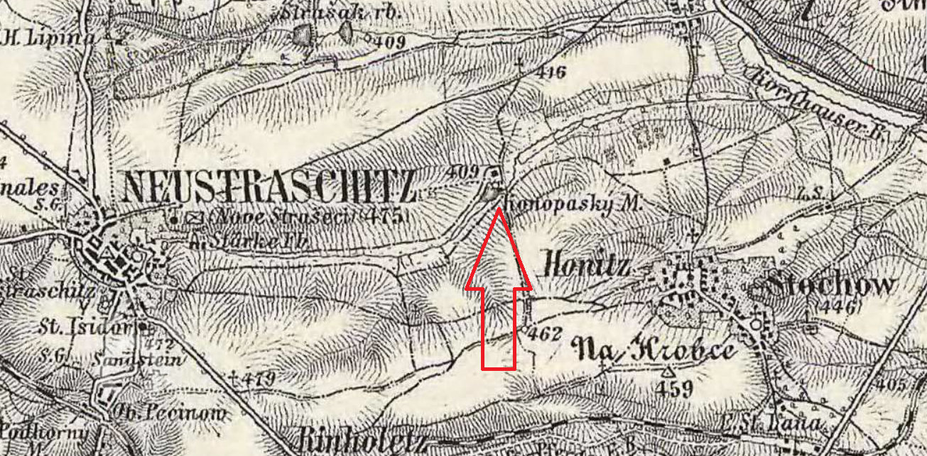 3 km východně od kostela Nárození P.Marie v Novém Strašecí