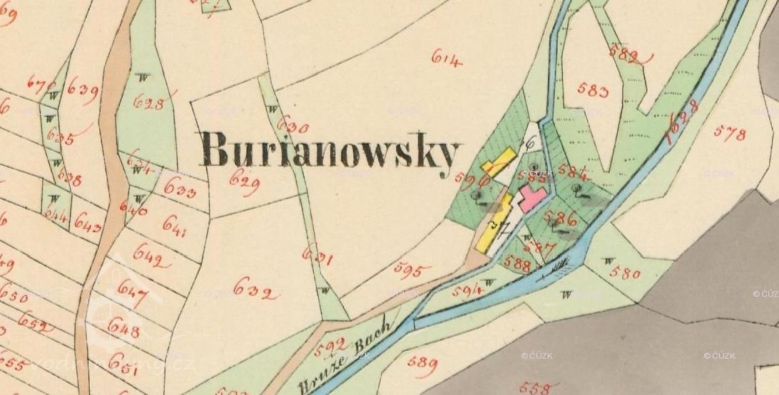 Rok 1890 – Přeborov čp.24 (Nový mlýnek) Josef Cmunt *5.2.1841, živnost mlynářská/mlynář, polní hospodářství/majitel pozemků;