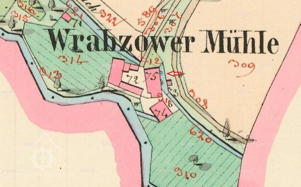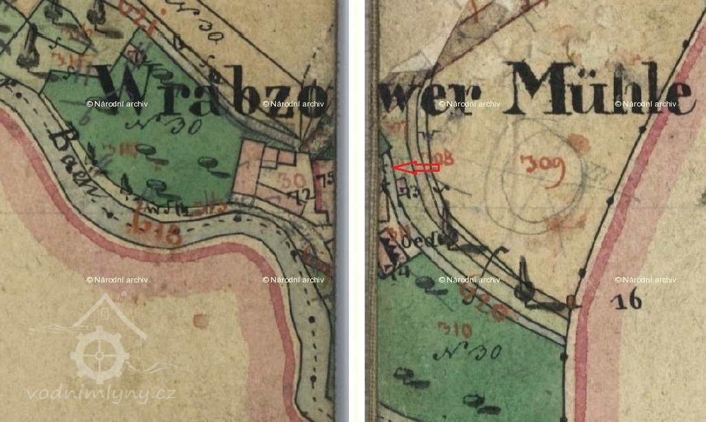 Dle stabilního katastru patřil mlýn v roce 1839 pod obec Církvice. K mlýnu patřily také rozlehlé pozemky v okolí. Rybník Vrabcov byl součástí obce Třebešice. Jednalo se o panský majetek.