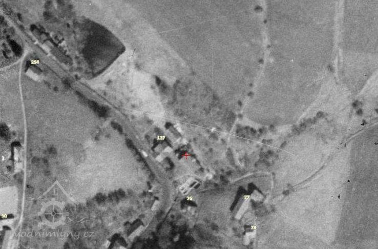 Na leteckém snímku z r. 1953 je ještě vidět celý komplex budov továrny, která však postupně chátrala.