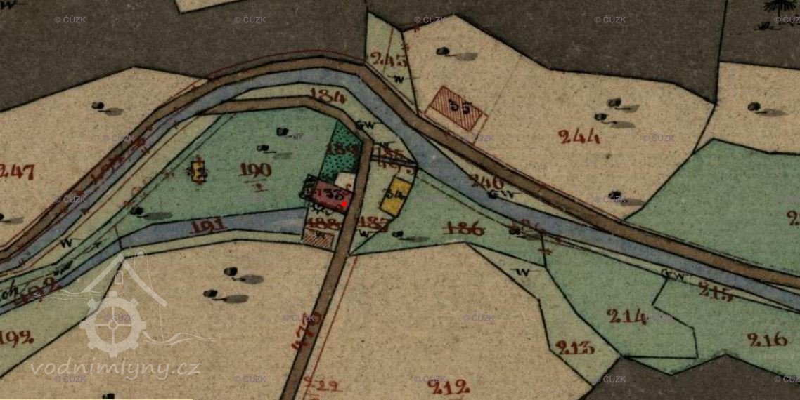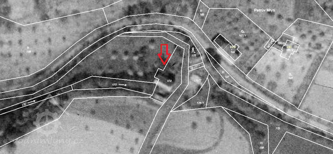 Seznam a mapa vodních děl Republiky československé mlýn neuvádí, nebyl tedy už v roce 1930 v provozu.(Ringo)