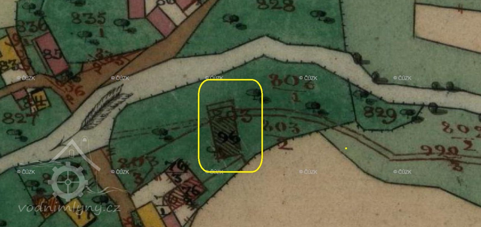 Popis1930: 1 kolo na svrchní vodu, hltnost 0,153 m3/s, spád 3,28 m, výkon 4,32 HP