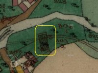 Budovy uspořádány kolem přibližně čtvercového dvora se stranou k potoku volnou.