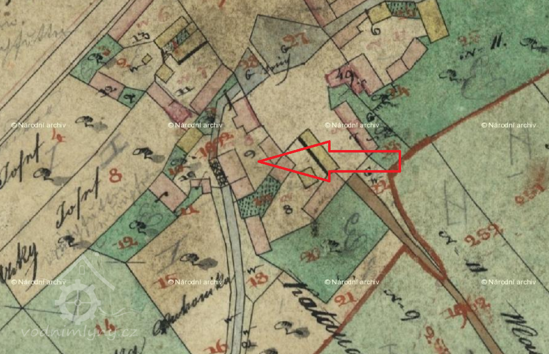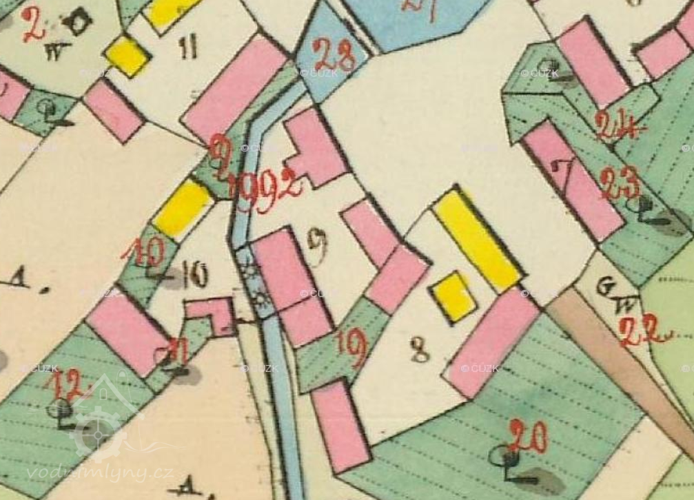 1930: 3 kola na svrchní vodu 1) hltnost 0,151 m3/s 2) hltnost 0,078 m3/s 3) hltnost 0,08 m3/s, všechny mají spád 3,3 m, celkový výkon 8,87 HP