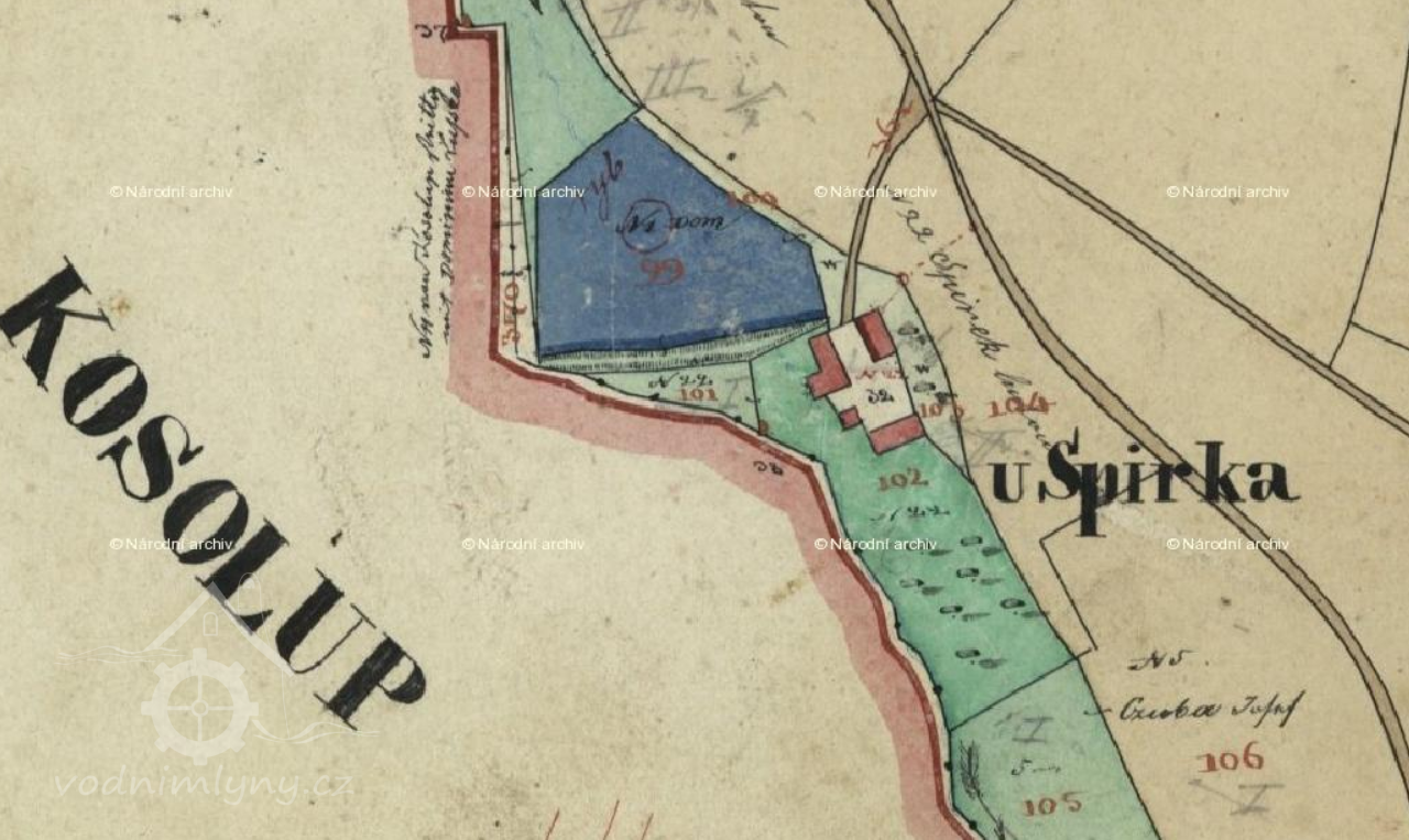 Popis1930: 1 kolo na svrchní vodu, hltnost 0,089 m3/s, spád 4,43 m, výkon 3 HP