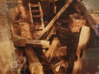 Trámy nad mlýnicí - v pozadí majitel, 1980, © Zdeněk Hošek