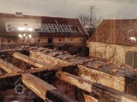 Stavba nového krovu nad mlýnicí, 1990, © Zdeněk Hošek
