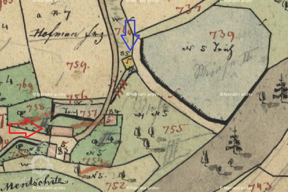 Popis1930: 1 kolo na svrchní vodu, hltnost 0,08 m3/s, spád 5,5 m, výkon 3,6 HP