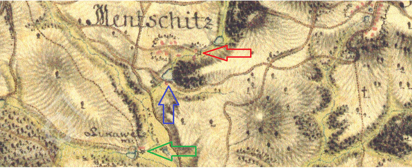 Ačkoliv Menčice - věrny svému názvu - náleží mezi menší vesnice, klapávaly zde hned tři mlýny. Toto je nejvýše položený z nich, kromě vlastní mlýnice se v jeho areálu nacházel přímo pod hrází rybníka ještě jeden menší objekt s vodním pohonem, patrně pila.