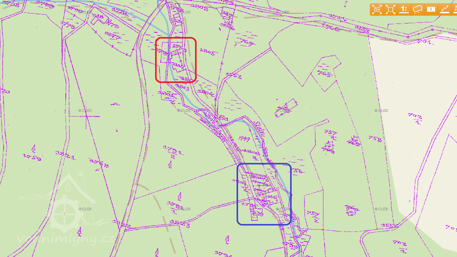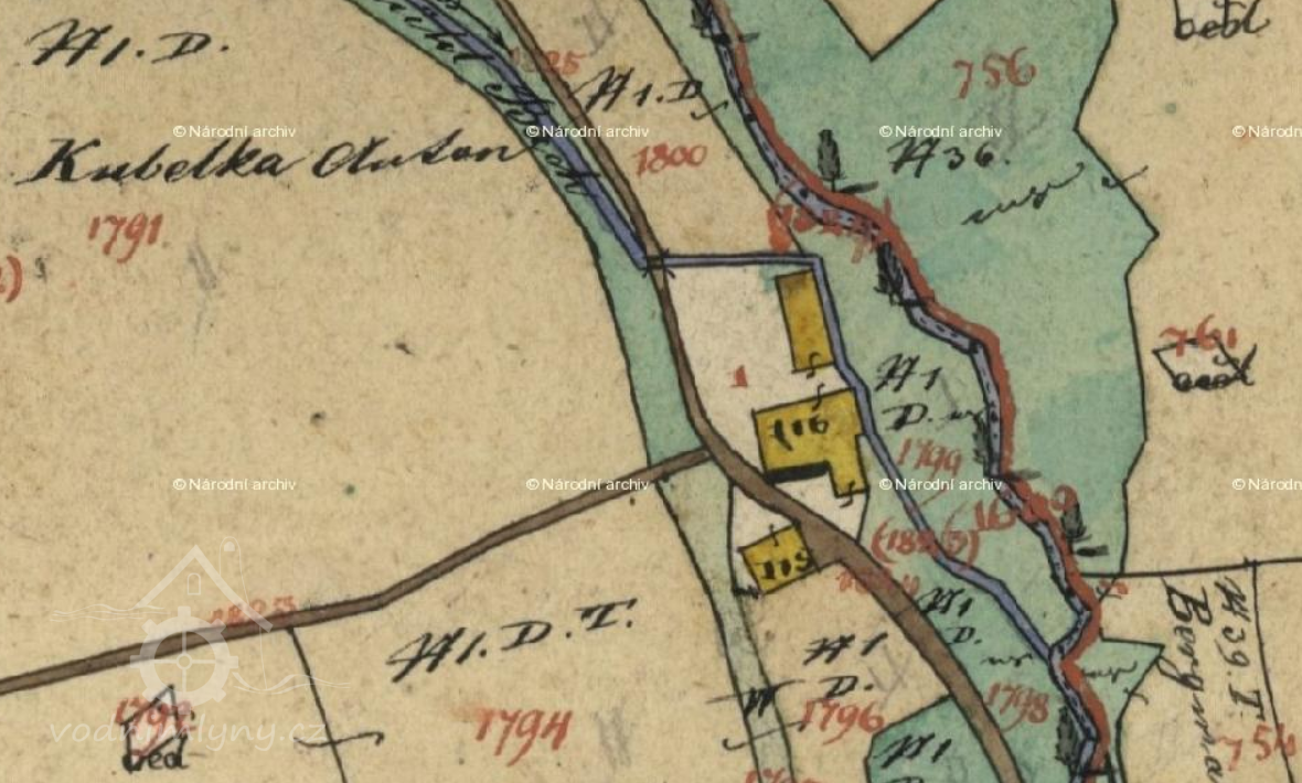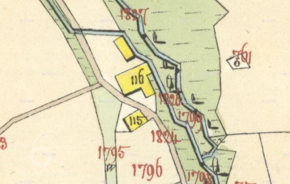 Původní dřevěný mlýn v osadě Hadinec ležel o něco níže, zanikl v II. pol. 19. stol. v souvislosti s výstavbou výše položeného Nového mlýna. (I když podle mapy III. vojenského mapování se zdá, že po jistý čas fungovaly oba současně.) Z mlýna zůstaly pouze nepatrné zbytky základů, které byly navíc rozplaveny při velké povodni 1998.
