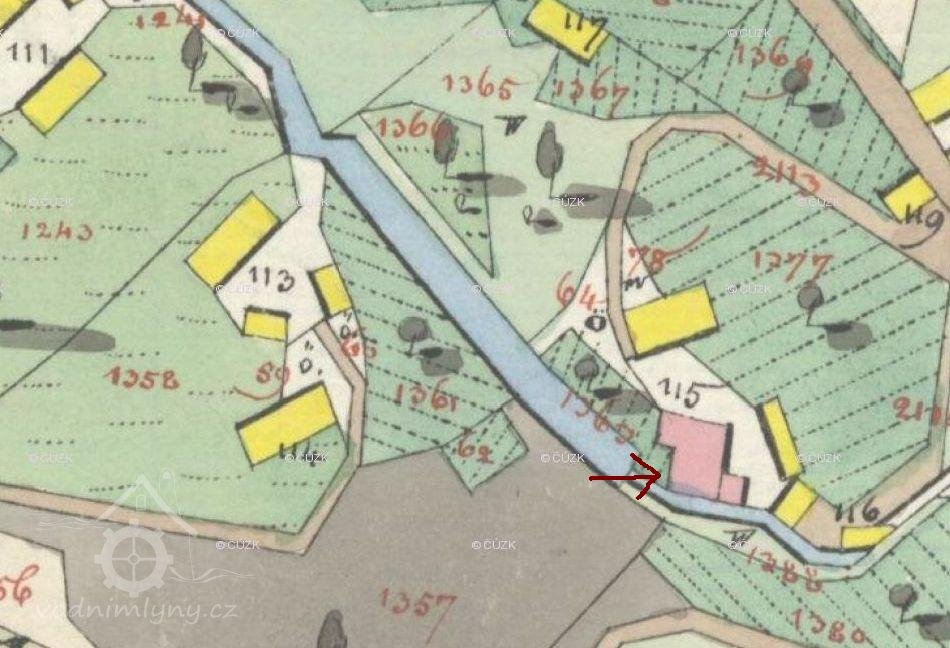 Popis1930: 1 kolo na svrchní vodu, hltnost 0,36 m3/s, spád 5 m, výkon 15 HP (11,1 kW)