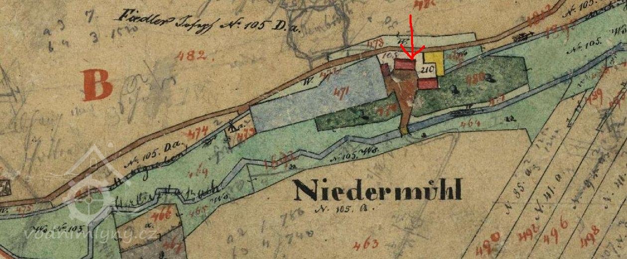 Roku 1930 mlel v Dolním mlýně mlynář Konrad Fiedler a mlýn byl tehdy poháněn kolem o výkonu 4,44 kW.