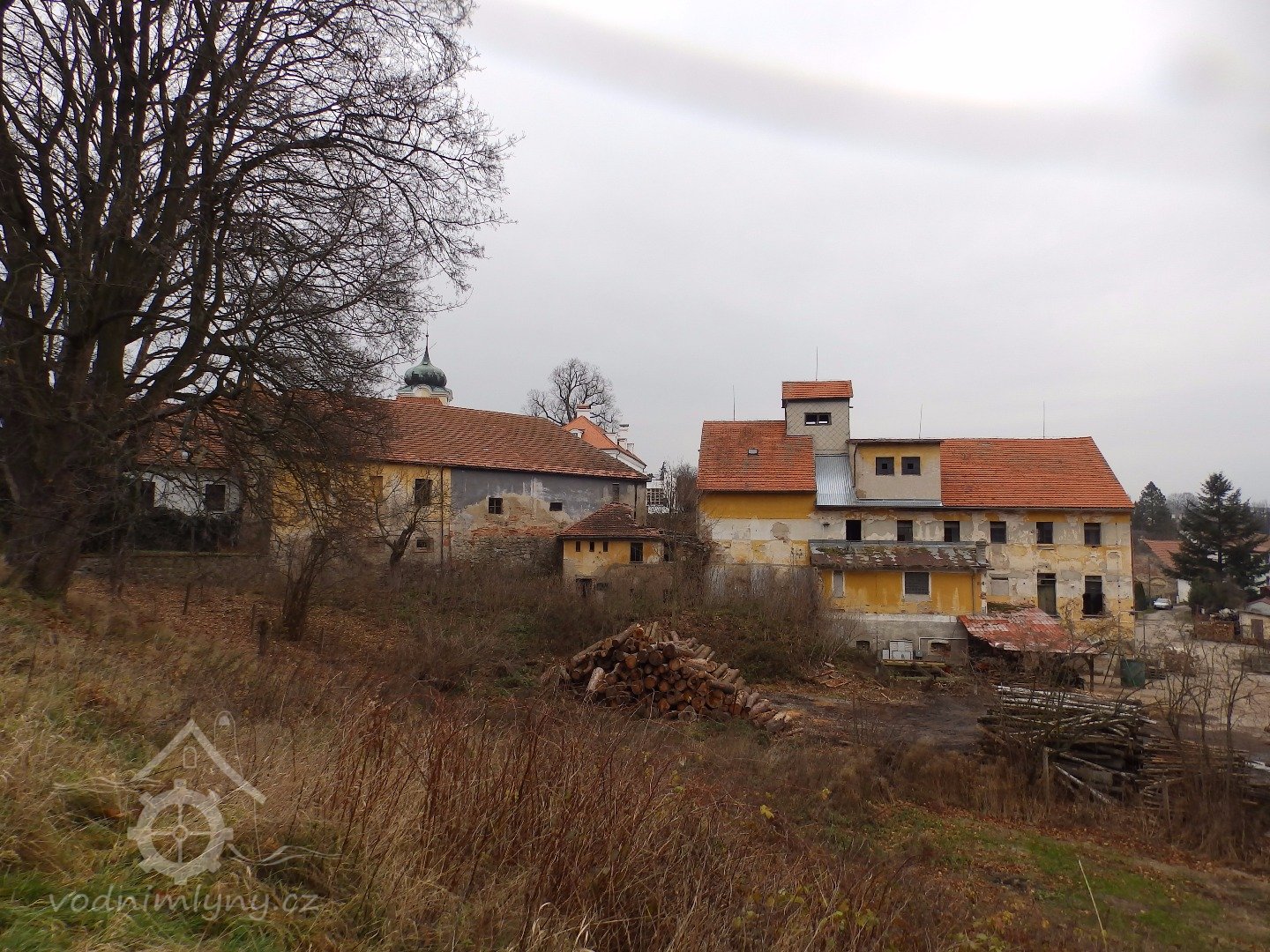 Velký mlýn industriálního typu, patrové obytné křídlo v sousedství.