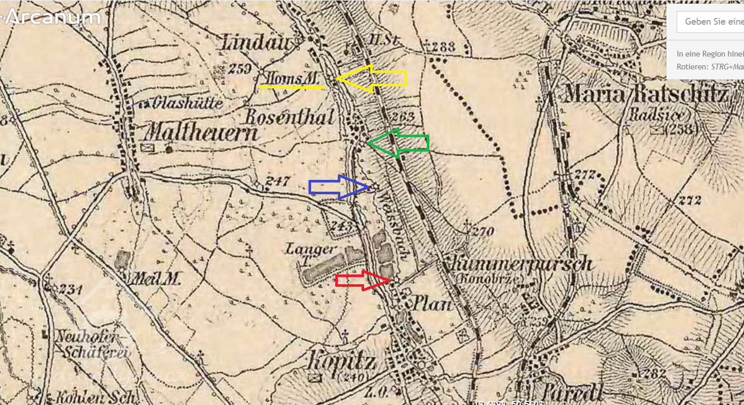 Severně od zbořeného kostela Božího Těla v Kopistech