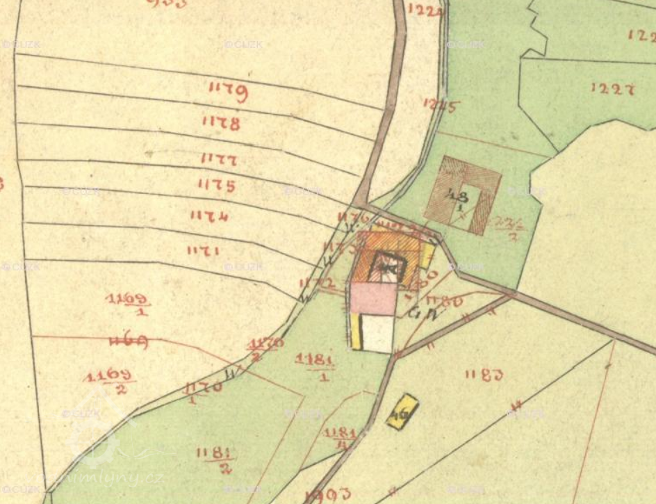 Popis1930: 2 kola na svrchní vodu, hltnost 0,047 m3/s, spád 5 m, výkon 2 HP