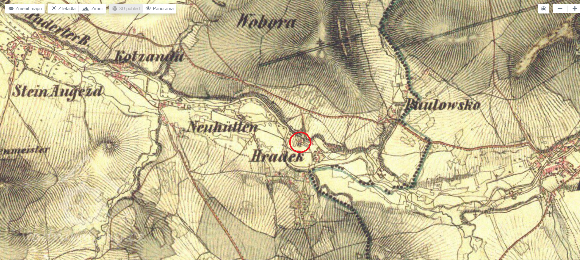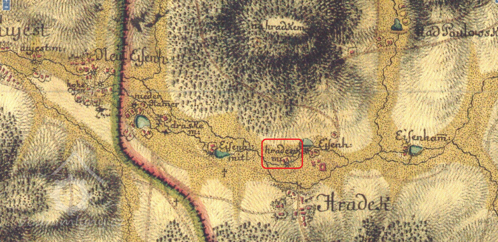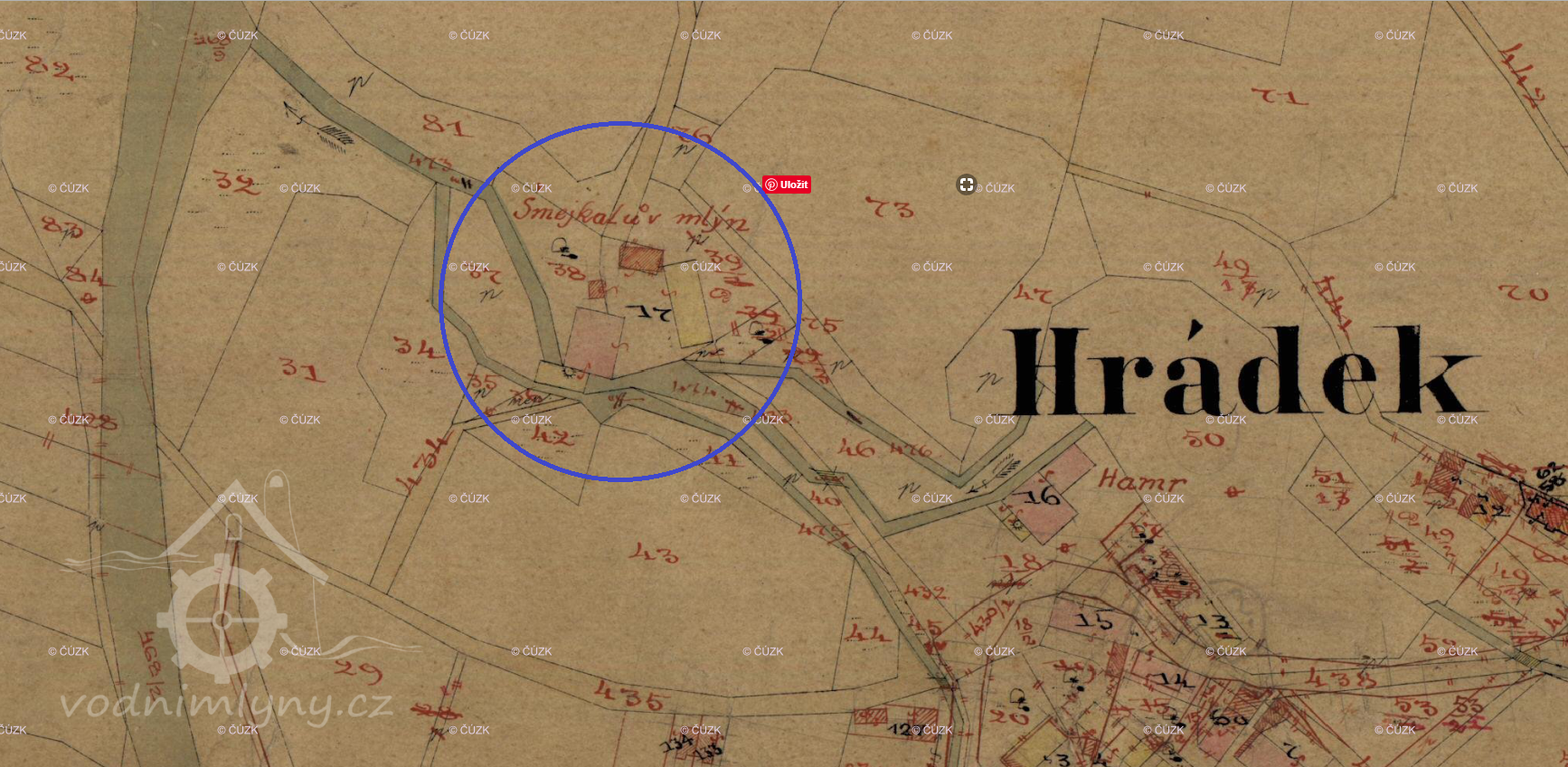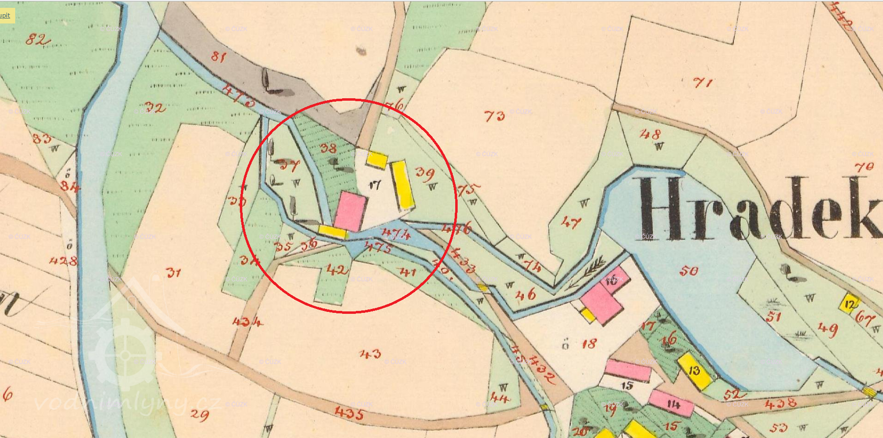 na mapě I. vojenského mapování zakreslen v těchto místech Hrádecký mlýn