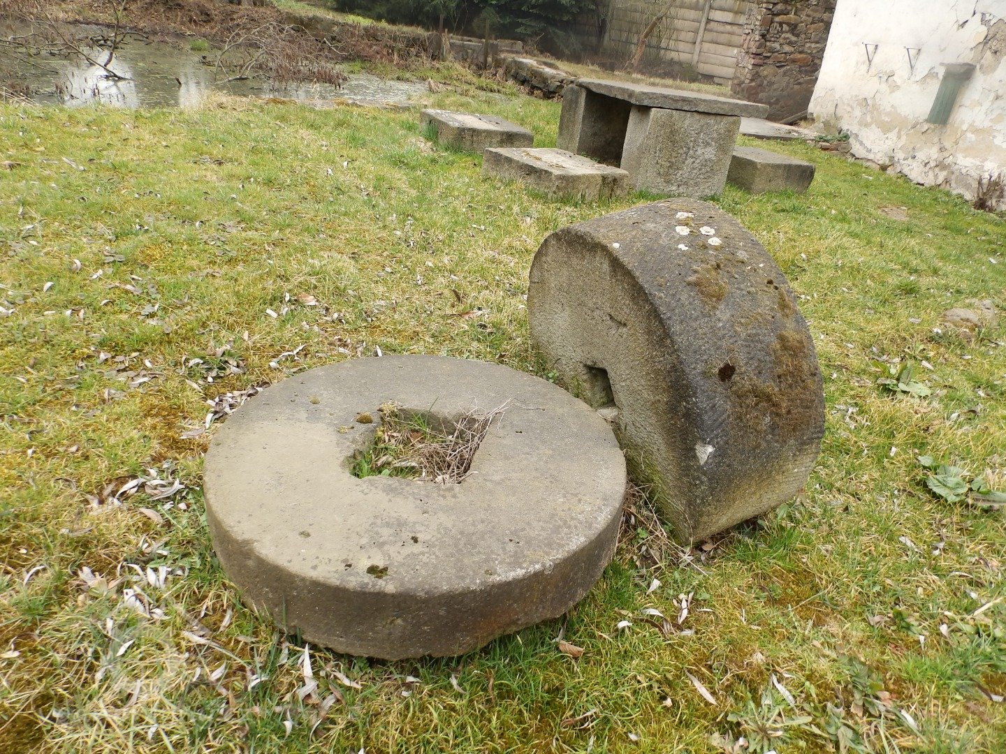 Mlýnské kolo se před časem rozpadlo, dochována hřídel a trosky lopatek