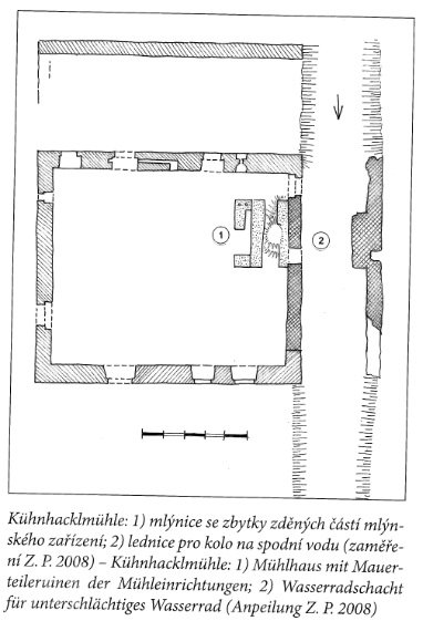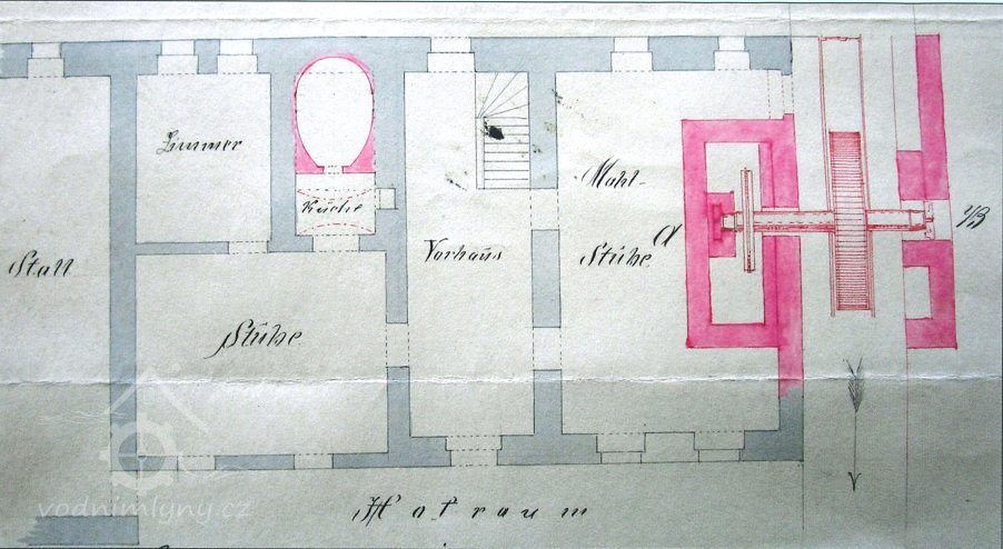 Popis1930 – 1 vodní kolo na spodní vodu, hltnost 0,9 m3/s, spád 1,5 m, výkon 6 HP.