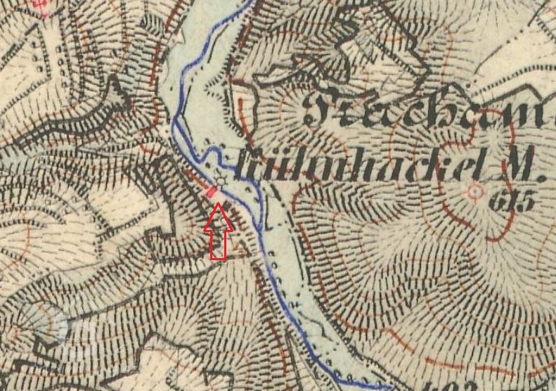 V roce 1800 je zde uváděn Franz Andreas Nahrhaft, za manželku měl Francisku Merzovou (Mirzovou) z Michalových Hor. Mlýn tehdy patřil pod Michalovy Hory.