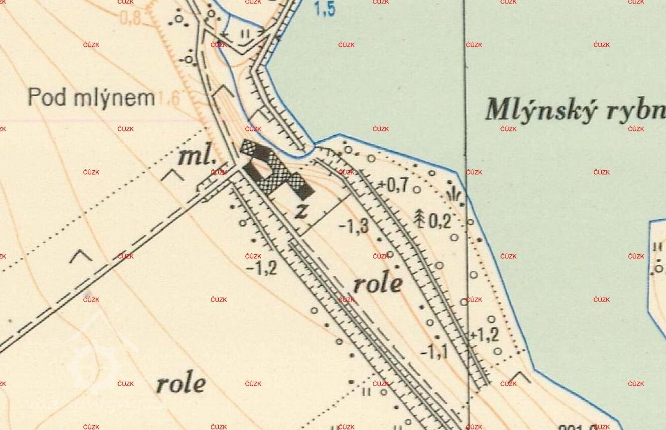 Pod rybníkem Mlýnským je mlýn Jana Ráfla čp. 16, který má právo přebytečnou vodou jmenovaného rybníka poháněti mlýnské kolo, kde před léty též stávala pila panská hraběcí okolo let 1782, na různé řezivo ze špalků. Mlýn tento za nedostatku vody poháněn je motorem na nasávací plyn, což jest ovšem dražší nežli vodní síla, osívá-li velkostatek rybník resp. správa rybníka, jenž jest nyní státní, dostává mlynář náhradu, ježto nemůže vodou mlíti. V roce 1925 obdržel 1000 Kč.