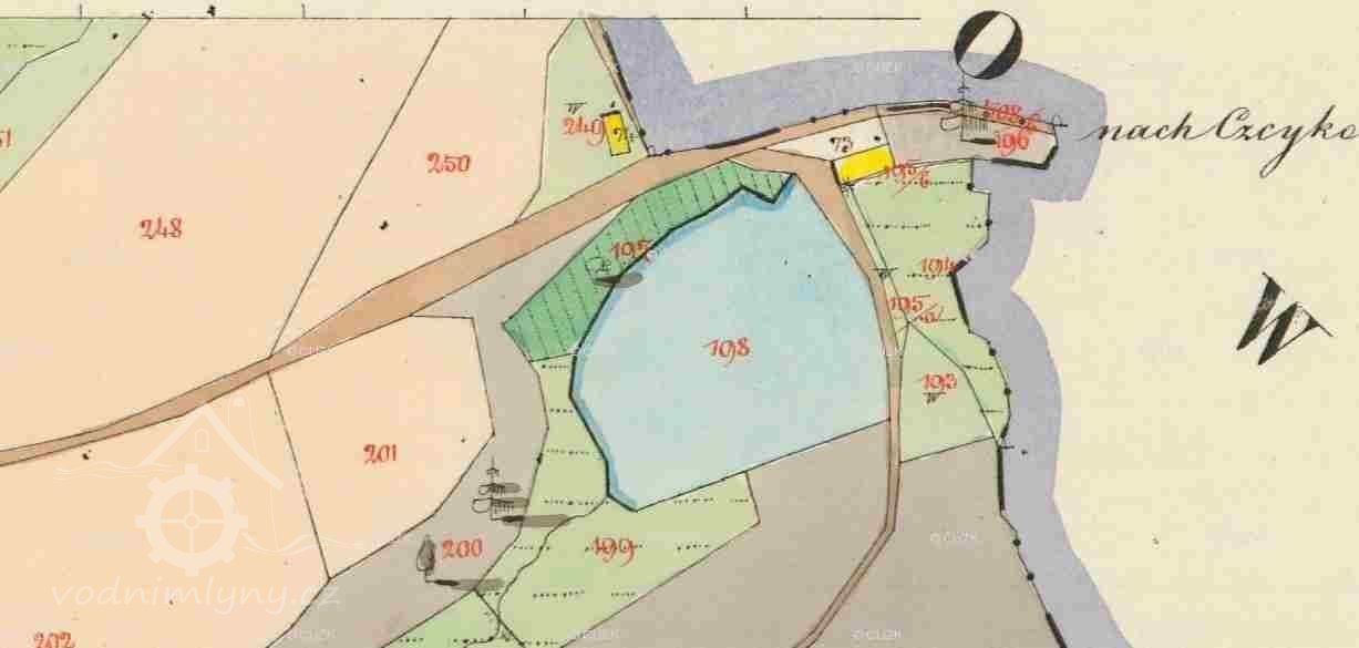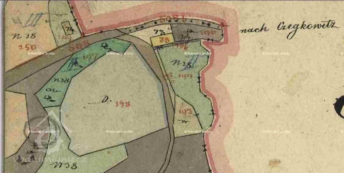 17. července 1891 zasazeno normální znamení při knížecím mlýně resp. při stávajícím rybníku kat. čís. 198 v Dobrovítově