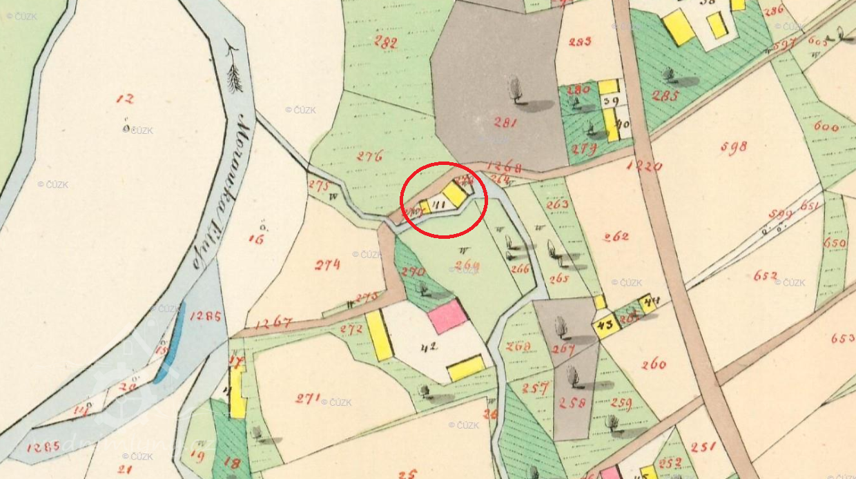 Mlýn dodnes stojí na parcele č. 41/1. Nemá číslo popisné. Stojí za čp. 97 (u hlavní cesty), které patří stejně jako bývalý mlýn a přilehlé pozemky Haně Babicové, Karle Beránkové a Ing. Marii Kunčické.