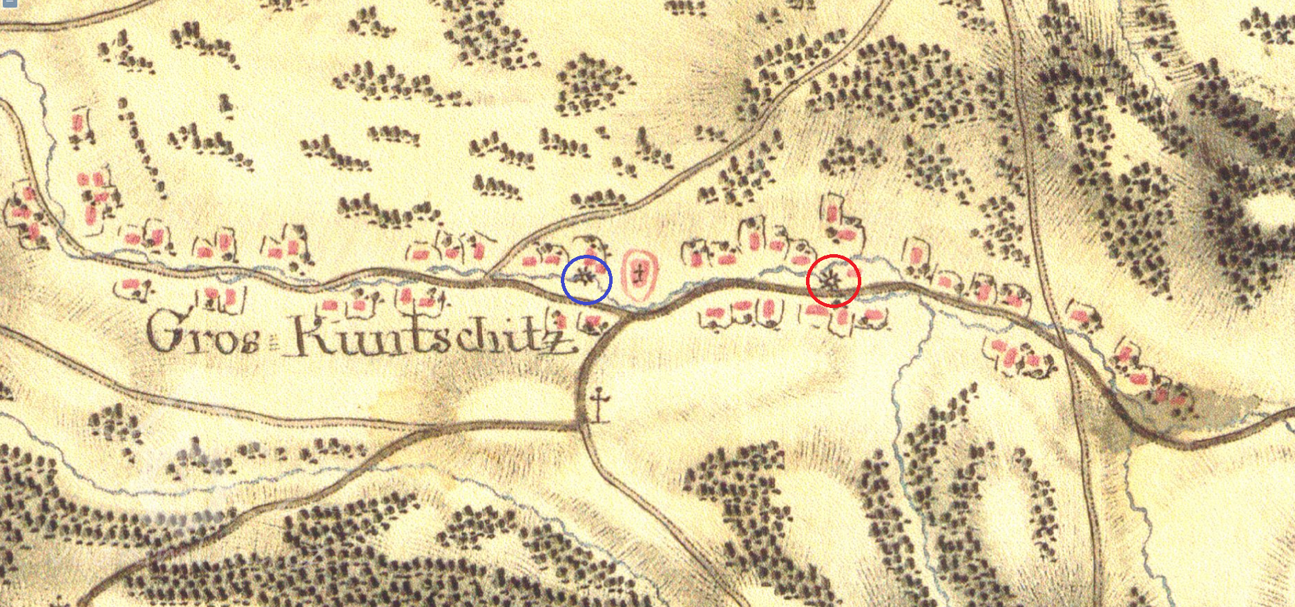 Druhý mlýn v Kunčicích, doložený k létům 1654 a 1843, podle I. vojenského mapování by se měl nacházet pod kostelem, na katastrálních mapách se však nepodařilo žádný odpovídající objekt dohledat.
