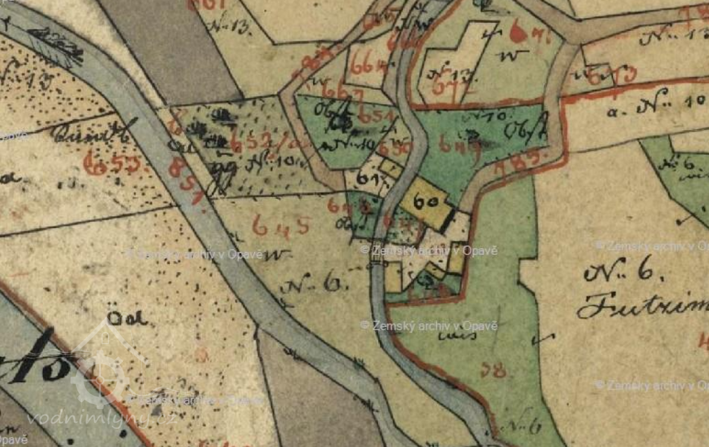 Vodu pohánějící tento mlýn dodávala řeka Ostravice, ze které byl vykopán vodní příkop asi 500 m výše a po dalších 500 m se zase znovu voda vlévala do řeky Ostravice. Mlýn byl značně veliký na svou dobu, vody bylo dostatek, následkem vybudovaného dřevěného jezu za tím účelem, na horním konci vesnice.