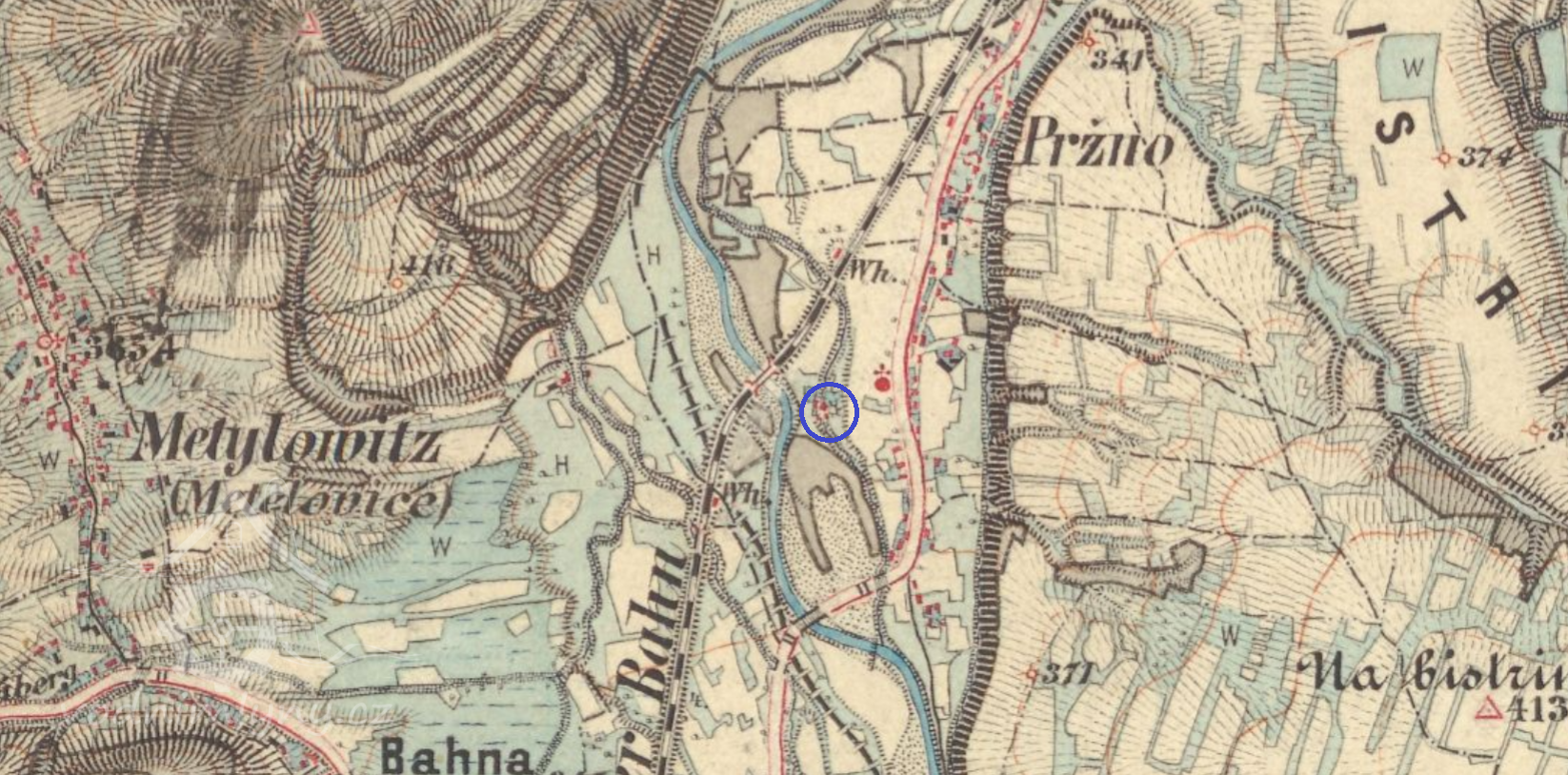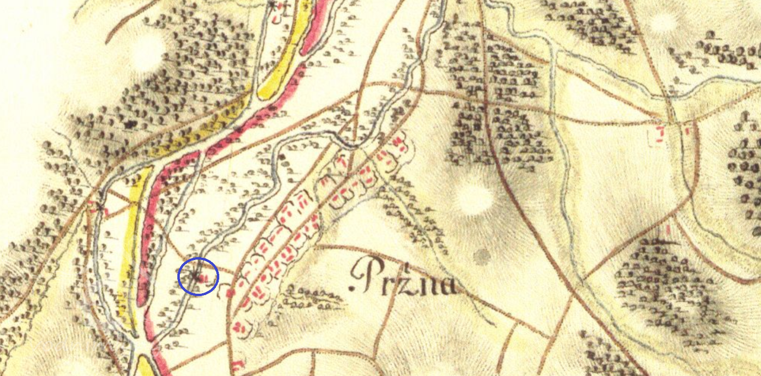 400 m jz od kostela Neposkvrněného početí P.Marie v Pržně