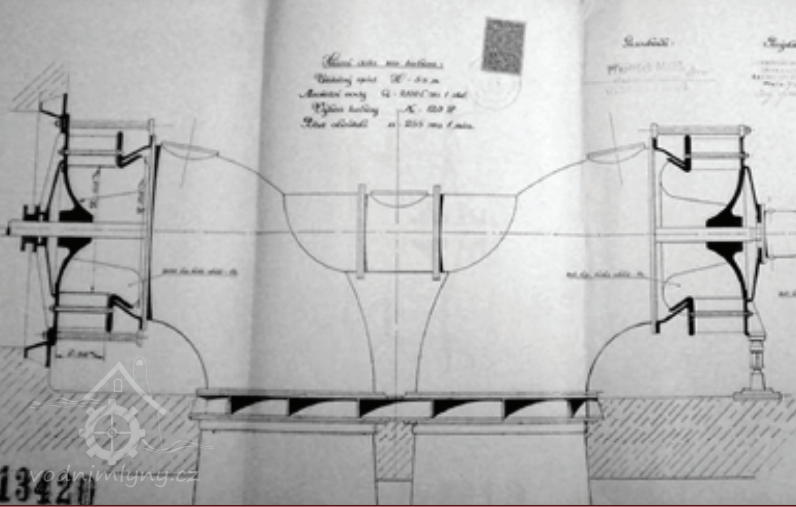 Popis1930: 1 turbína Francis, hltnost 2,1 m3/s, spád 5,5 m, 255 ot./min., výkon 120 HP (88,8 kW)